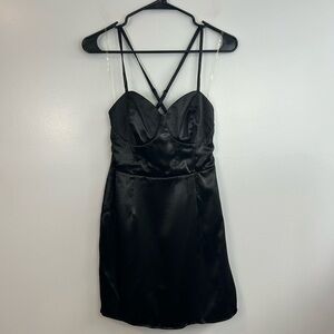 NWT Wild Fable Black Satin Corset Sleeveless Mini Dress Size XS