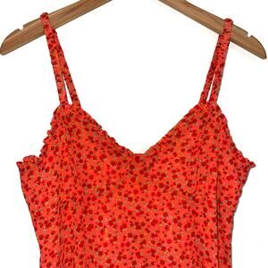 NWT Wild Fable Chiffon Vibrant Orange Floral Slip Mini Dress Size Medium