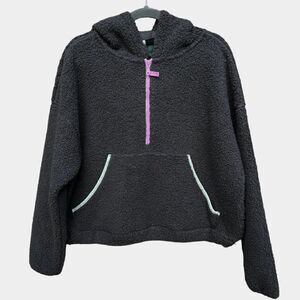 NWT Wild Fable Gray Purple Zipper Sherpa Hooded Quarter Zip Sweatshirt Hoodie