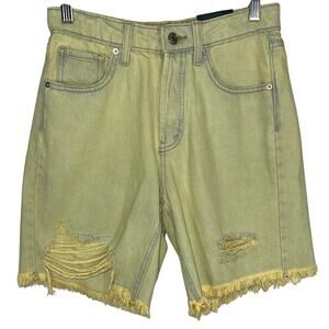 NWT Wild Fable High Rise Distressed Denim Bermuda Jean Shorts Lime Size 0/25