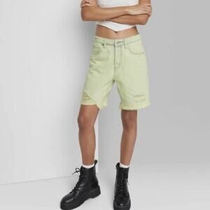 NWT Wild Fable High Rise Distressed Denim Bermuda Jean Shorts Lime
