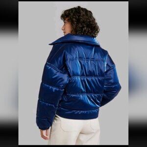 NWT Wild Fable Iridescent Shine Duvet Snap Puffer Jacket Blue ** SZ M