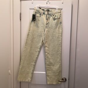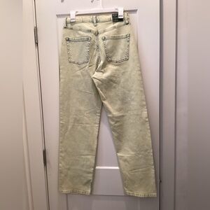Women's lime-green straight jeans with an acid over-dye pattern from Wild Fable. Feature super high-rise design and stretchy fabric. Back and front pockets lend functional flair. Full-length jeans in a straight fit for cool style. Mom jeans!