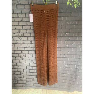 NWT Wild Fable Open Weave Brown Crocheted Flare Leg Festival Pant S