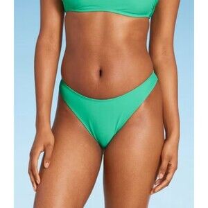 NWT Wild Fable Scoop Front Low-Rise High Leg Cheeky Bikini Bottom Green XL
