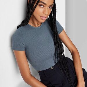 NWT Wild Fable Women's Short Sleeve Seamless Baby T- Shirt Crop Dark Blue XXS