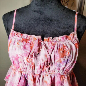 NWT Wild Fable Women's Tiered Ruffle Pink Butterfly Tank Top Size XL