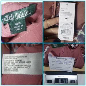 Wild Fable Womens size XXS Dusty Pink Midi Tank Dress with Floral Pattern, ties in the back at the neck. NWT