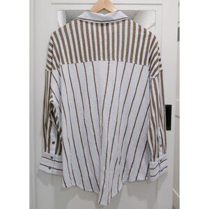 NWT Wild Palms Button Shirt 100% Cotton Long Sleeve Stripe Beach Stretchy