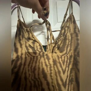 NWT Wild and Fable women’s zebra print brown spaghetti strap summer dress large