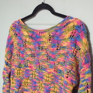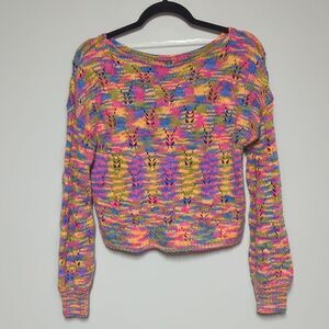 Beautiful pink, yellow. Orange, blue, green cable knit cropped sweater.