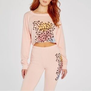 NWT Wildfox Crystal Rose Airbrushed Leopard Crop Sweatshirt