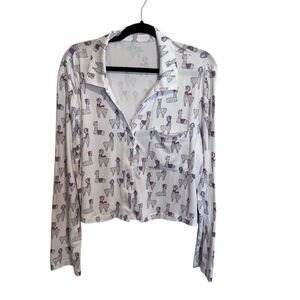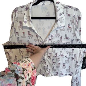 Charming llama print top by Wildfox Intimates. Features playful llamas in hats on a white background.