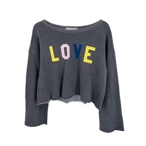 NWT Wildfox LOVE Graphic Cut Off Sweatshirt Washed Black Grey