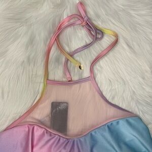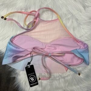 NWT Wildfox Pastel Rainbow Halter Bikini Top size Large