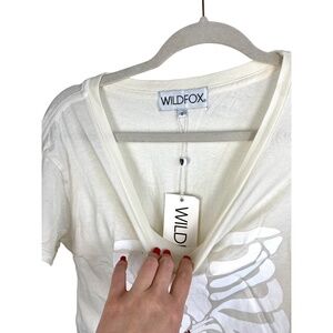 NWT Wildfox Pizza Full Stomach Skeleton Graphic T Shirt tee short sleeve Beige S