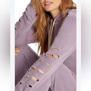NWT Wildfox Rags To Riches Ivy Sweatshirt hoodie lounge dusty rose distressed S