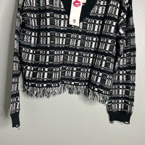 NWT Wildfox Reese Ritzy Fringe Hem Sweater in Black and White V-Neck Size Large