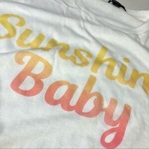 NWT Wildfox Sunshine Baby Keke crew neck t-shirt in clean white with yellow-to-pink ombré graphics. 100% cotton.