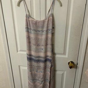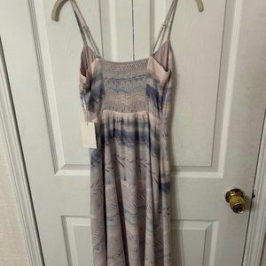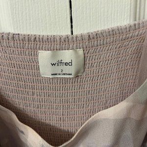 NWT Aritzia/Wilfred Affogato midi dress with slit, size 2. Perfect condition. Color is listed as "HNY BEIGE/WARMEST YLW" but it's really light blue/light purple with some beige tones. It's gorgeous, just not my style!