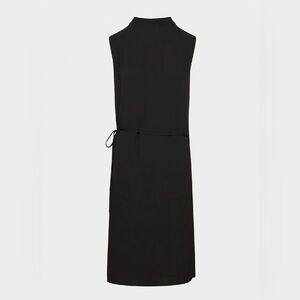 This is a cowlneck dress with open back, waist tie detail and wrap construction. It's made from lightweight crepe fabric with a satin back