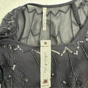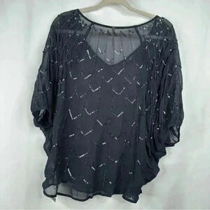 NWT Willow & Clay NORDSTROM Sequin Beaded Sheer Top Dolman Sleeve Blouse Size M