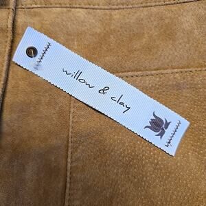 The New with Tags Willow & Clay Women's Ashley Genuine Leather Suede Button Skirt in size M combines a western boho style with a touch of coastal cowgirl charm. Made from rich camel brown suede with a button closure, this mini skirt is perfect for a party or casual occasion. The skirt features pockets and is designed for regular sizing, making it a versatile addition to any woman's wardrobe. The brand Willow & Clay ensures high-quality craftsmanship and attention to detail in this unique and stylish piece.