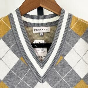 NWT Willow & Wind Argyle Knee Length Sweater Vest Dress - Gray Yellow, Size M