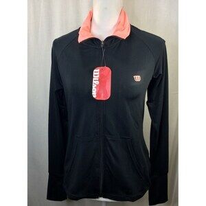 NWT Wilson Black Zip Workout Jacket Woman's Size S Coral Salmon Collar New