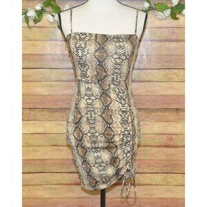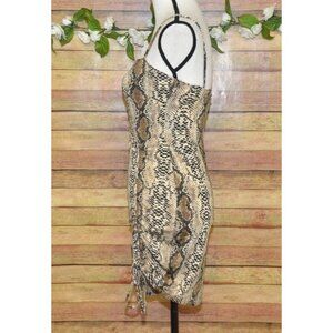 NWT Windsor Brown Snakeskin Sexy Bodycon Ruched Mini Dress Sleeveless Size M
