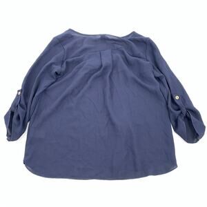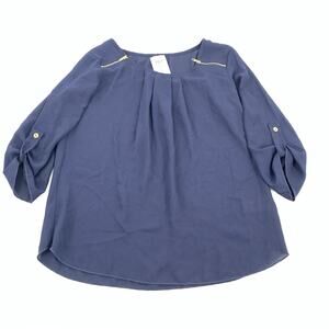 NWT Windsor Chiffon Roll Tab Sleeve Zipper Shoulder Blouse Small Navy Blue Top S
