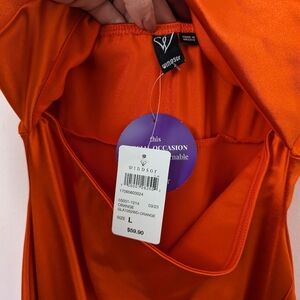 NWT Windsor Orange Satin Cut Out Bodycon High Slit Seona Midi Dress