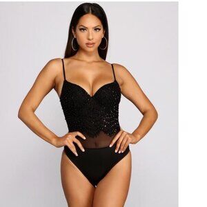 NWT Windsor Twisted Angel Embellished Corset Bodysuit