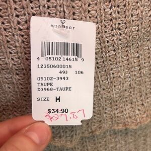 NWT🆕 Windsor Woman’s Medium Fold Over Knit Taupe Ruffled Long-Sleeve Mini Dress