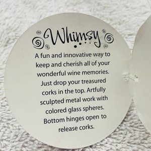 New With Tag. Wine bottle cork cage. Epic brand - Whimsy Collection. Artfully sculpted metal work with pink, green, blue glass spheres. Panel on each side: "Corks" and grape bunch. Load corks at the open top. Bottom of cage has hinge to open & release corks. 14" Tall x 4 1/4" Diameter. Makes a great hostess or house warming gift, especially if paired with a bottle of wine! Or, treat yourself! From illness/smoke/pet-free home. Select other items from my closet, bundle in 1 order & save on shipping! NOTE: Poshmark's flat rate shipping fee is an especially good deal on this item, given its weight.