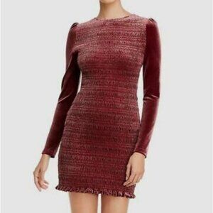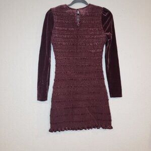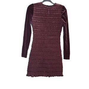 NWT Wine Velvet Smocked Puff Sleeve Mini Dress Size Small
