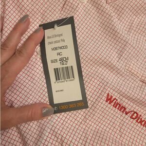 Step up your professional or casual wardrobe with this Winn-Dixie XL 18 Button-Down Shirt. Crisp white with red check pattern, embroidered logo, and classic fit make it versatile for office, career events, or casual wear. New With Tags (NWT) and ready to wear!