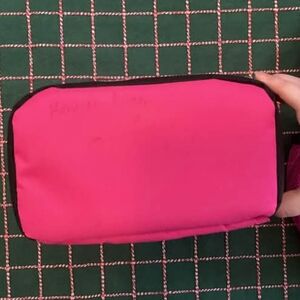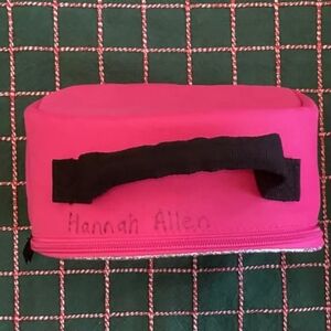 ** Lunch bag - Name written on lunch bag, two zipper opening has a place for drinks in the bottom and the food items in the top. Used a few times, has a couple of light staining areas inside.