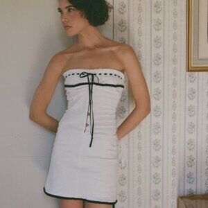 NWT With Jean Sabrin White Embroidery Strapless Sleeveless Lace Detailing Ribbon Lace-Up Mini Corset Dress Size XXS