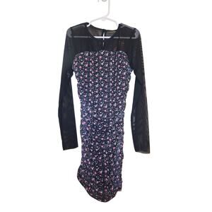 NWT With Jules Big Girls Long-Sleeve Printed Mesh Combo Dress Black Floral L