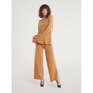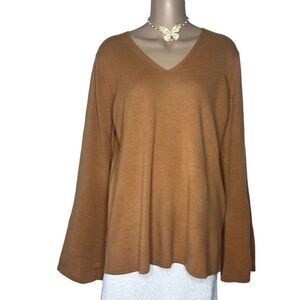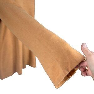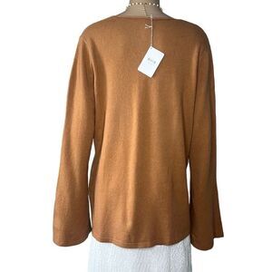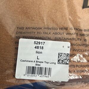 $720 NWT Wolford Cashmere A Shape Top Long Sleeves. Stule #52917. Size L. Color Lion. LionIndulge the senses with this luxuriously soft A-shape Cashmere top, made from the finest wool blends. Ingeniously designed knitting structures create a body mapping effect that flatters the figure and caresses the skin. Flared sleeves and a loose fit allow it to flow effortlessly around you with every step. Discover the incomparable softness of Cashmere with this A-shape top. Flared sleeves. Loose A-shape fit. V-neck. This product MUST be dried and stored lying down. (Do not hang dry). 100% cashmere
