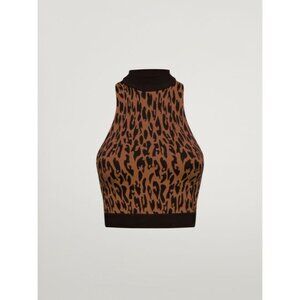 NWT Wolford Sleeveless C2C Leopard Top Coffee /Black Size XS