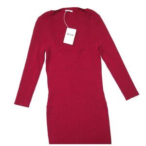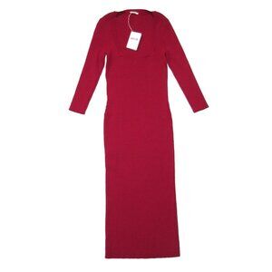 NWT Wolford Square Neck in Pompei Red Wool Blend Ribbed Knit Sweater Dress 34