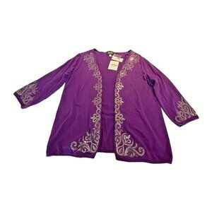 NWT Woman LG BOB MACKIE Wearable Art Purple Open Cardigan Sequin Filigree Office