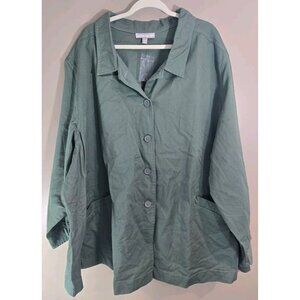 NWT Woman Within Denim Green Military Button Up Jacket Sz 5X