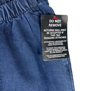 A brand new pair of Woman Within Straight Leg Fineline Pull-On Stretch Denim Jeans in Stonewash Sanded. These are elastic waist jeans with pockets and each hip.