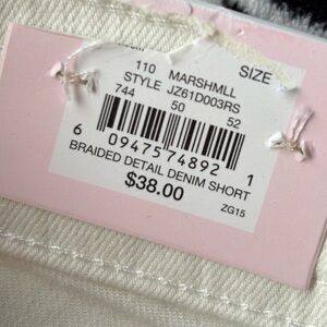 NWT Woman’s 7 Candies White Denim Shorts With Rhinestone Buttons & Braided Details