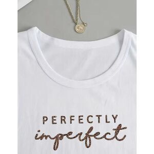NWT NEW Woman’s SZ S Solid White With “Perfectly Imperfect” In Leopard Print On The Front.