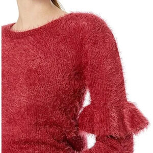 NWT Women BB Dakota Warm Fuzzy Eyelash Sweater Ruffle Sleeve Size:S