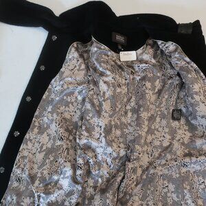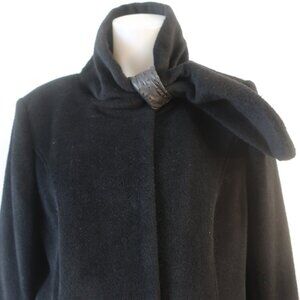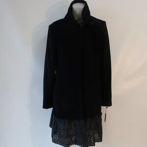 NWT Women Badgley Mischka Black Mix Media Wool Alpaca Leather Trim Olivia Coat L